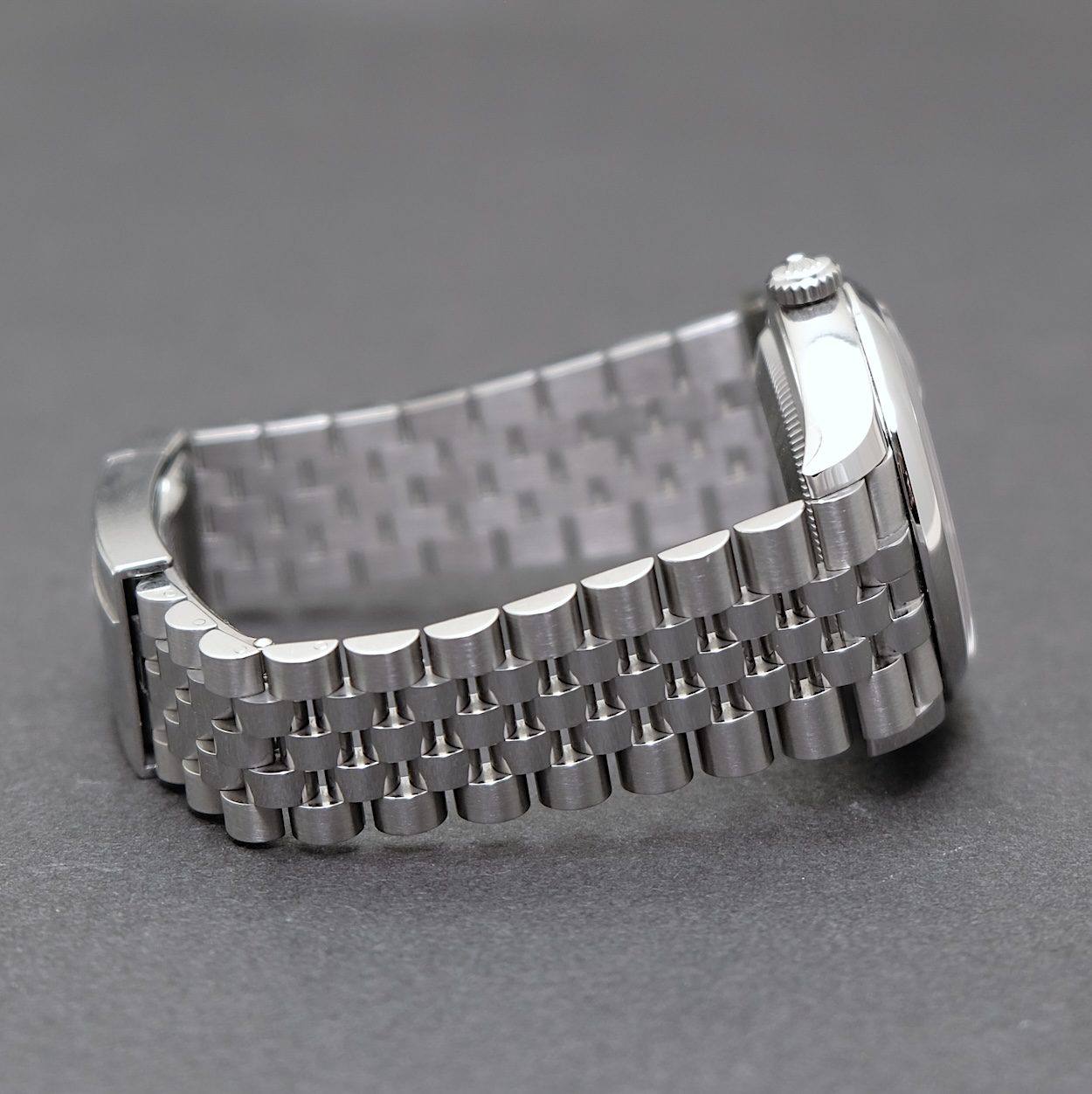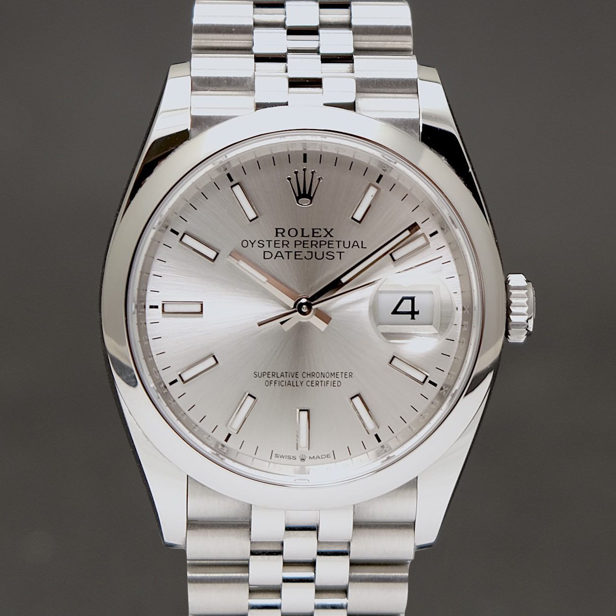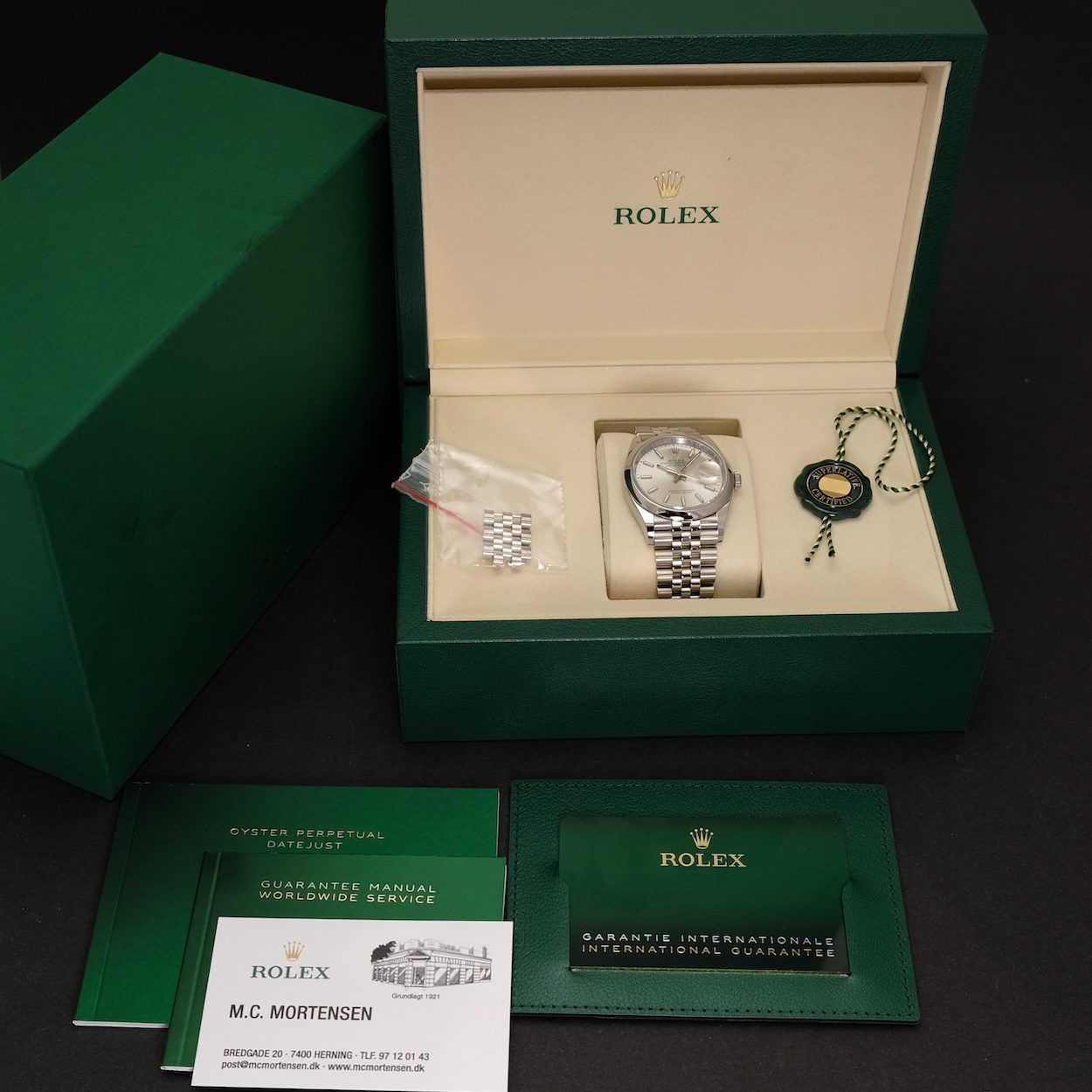 Rolex Datejust ref 126200 med bokse og papirer fra 2025. Uret fremstår stort set som nyt med små og få hairlines på spændet. Skiven er Silver sunburst, som giver et flot spil i uret. Uret er 36 mm og derfor en fin størrelse, i kombination med den flotte Jubileelænke.